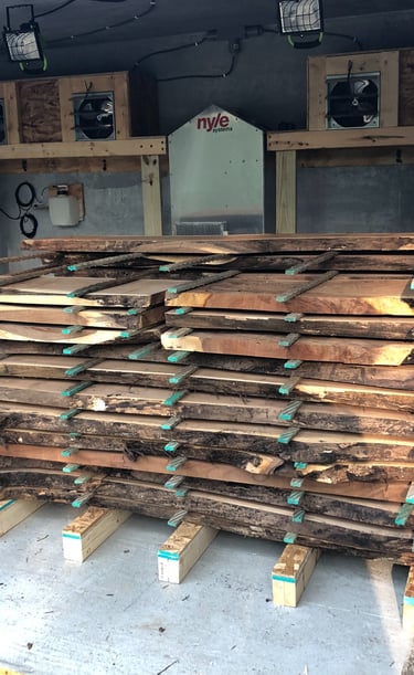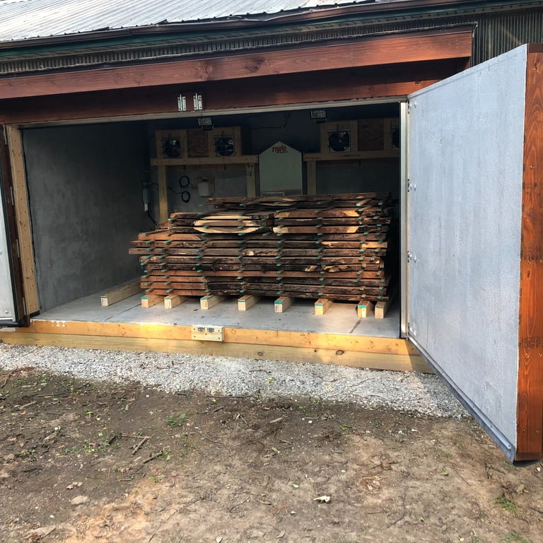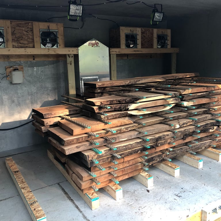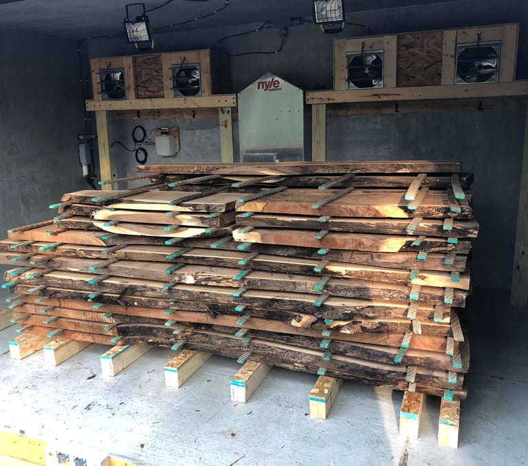 Utilize our kiln to dry your cut lumber to produce furniture grade lumber. We use a Nyle dehumidifier kiln to dry and sterilize your lumber so you can use it in weeks rather than waiting for months/years for it to air dry. Air drying alone is not sufficient for furniture grade lumber and can host bugs/eggs.